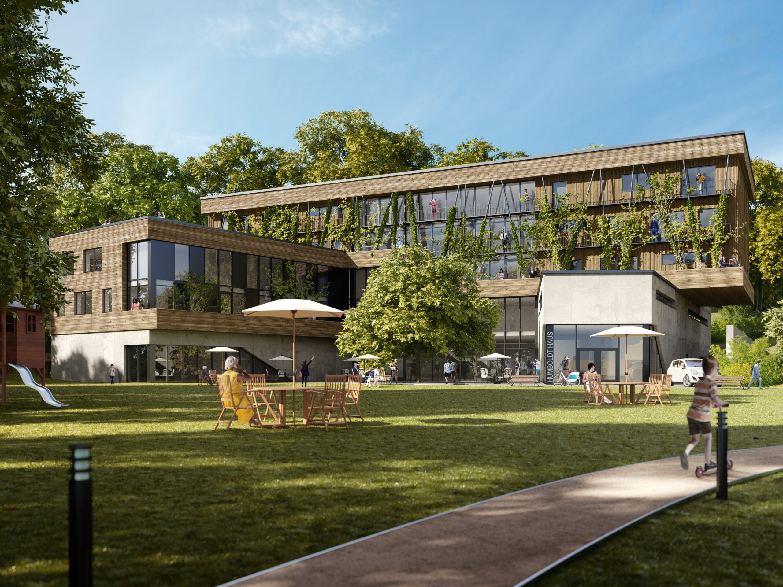 Das Gebäude soll durch den ressourcenschonenden Umgang mit Natur und Umwelt Ausdruck für die von den Bewohnern wertgeschätzte und praktizierte globale Verantwortung für Nachhaltigkeit auf allen Ebenen sein.